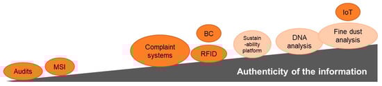 - Garcia-Torres, S.; Albareda, L.; Rey-Garcia, M.; Seuring, S. Traceability for sustainability—literature review and conceptual framework. Supply Chain. Manag. Int. J. 2019, 24, 85–106. [Google Scholar] [CrossRef]