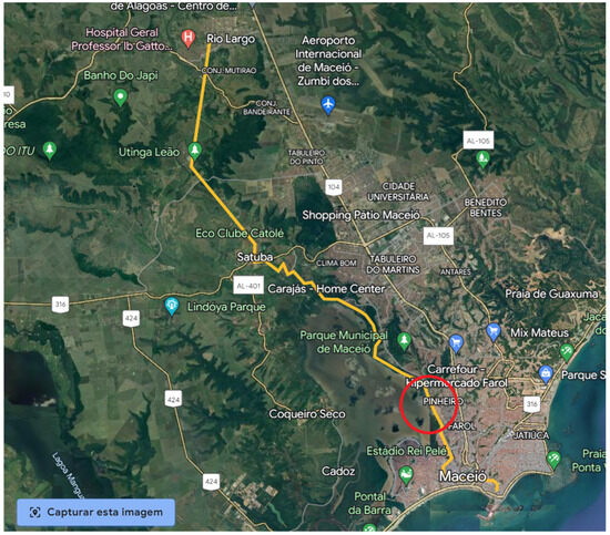 Despite P1 solving the problem of moving people in the region, it caused a high rate of vehicle congestion, especially on Avenida Fernandes Lima, an important avenue in the municipality, i.e., the problem of urban mobility in Maceió was not resolved. Thus, as a definitive answer, a second Project (P2) was presented. This suggested establishing the same route as used in Project 1 (Figure 3) but making adaptions for the use of a BRT (Bus Rapid Transit) system. However, there are impasses since some roads are not wide enough for the necessary adaptations to use a BRT system; this alternative would probably partially solve the problem.