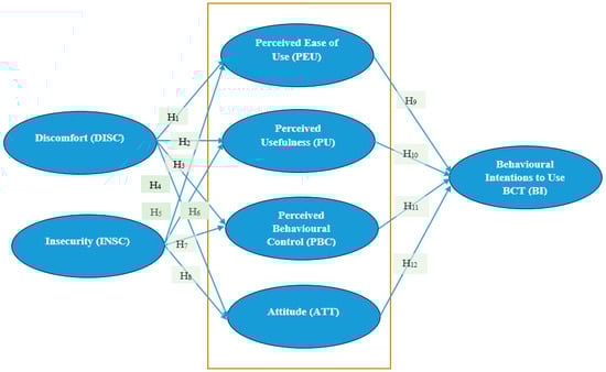 Hypothesis 6 (H6). Insecurity (INSC) negatively affects the perceived usefulness (PU) of BCT.