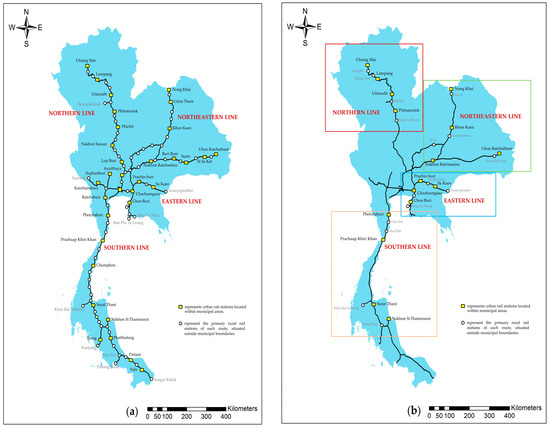 - State Railway of Thailand. Thai Railway Route Network. Available online: https://www.railway.co.th/More/Knowledge_Detail? (accessed on 29 September 2023).