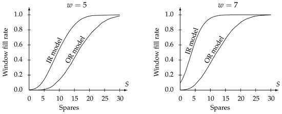 The window fill rate of the IR and OR model in the baseline case for different spare levels.