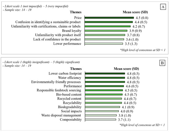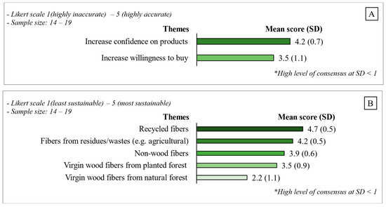 Furthermore, the Delphi study revealed market expert perspectives regarding the impact of e-commerce growth on the adoption of eco-friendly options (Figure 4A). They stated that the rise in e-commerce may benefit the industry by simplifying the purchase process of sustainable hygiene tissue products, increasing awareness about the products’ sustainability credentials, and improving product availability, accessibility, and traceability.