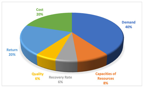 Research by Tirkolaee et al. [7] unveils an MILP model for a sustainable mask CLSC network, where sustainable development is investigated in terms of concurrently reducing total costs, total pollutants and total human risk at the same time. Salehi-Amiri et al. [16] developed an MILP model to construct a cost-effective CLSC network for the walnut industry. The suggested model is validated and improved using exact, metaheuristic and hybrid approaches. The findings demonstrate the importance of changing inventory holding costs, the impact of transportation costs on opening costs and the linear influence of demand on supply chain expenses. Salehi-Amiri et al. [18] designed a closed-loop supply chain (CLSC) for the avocado industry, incorporating avocado seed recycling and compost utilization. That paper shows that the demand’s effect on the network strongly affects both cost and employment efficiency objectives through a real-world case study in Puebla, Mexico, using GAMS software and sensitivity analysis.