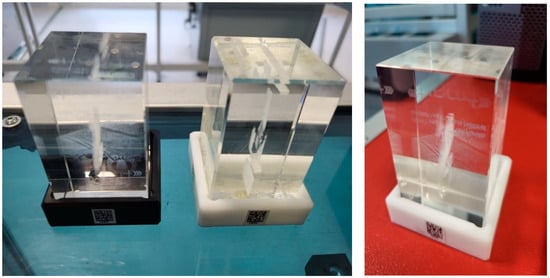 Figure 2 depicts a dynamic production system established within our laboratory (LGIPM) in France. This innovative system specializes in manufacturing engraved glass cubes of varying colors, each elegantly mounted on a plastic pedestal. Every meticulously crafted piece undergoes meticulous storage, assembly, and packaging processes before emerging as a refined finished product.