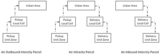 Depending on parcel pickup and delivery locations, we also consider three types of parcels in the system including: