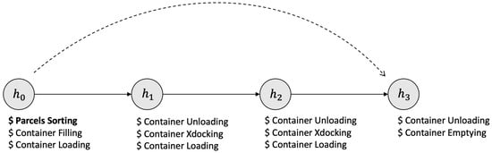 The Hyperconnected City Logistics (HCL) conceptual framework, combining the City Logistics and Physical Internet frameworks, has been introduced as an alternative solution to the existing inefficient and expensive urban flow movements and to address the sustainability and resiliency challenges faced by logistics in cities [,]. Within the HCL framework, Hyperconnected Megacity Parcel Logistics (HMPL) focuses on parcel flow into, through, and out of megacities []. HMPL relies on an urban logistics web composed of multi-tier meshed logistic-hub networks mapped to geographically multi-tiered space clusters. Shipping a parcel from its pickup point to its delivery point in HMPL involves three fundamental processes: acquisition, transfer, and delivery. These three tasks, however, require the involvement of several entities, such as hubs and drivers, and necessitate a wide variety of operators to make decisions cooperatively and interactively.