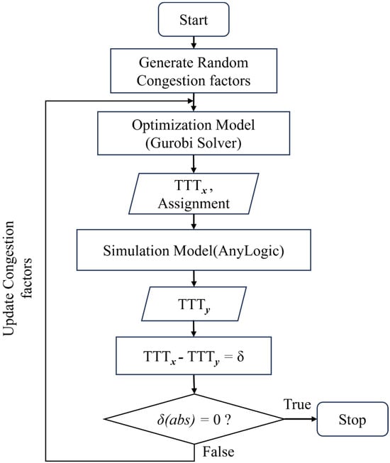This section involves the proposed integration of the simulation and optimization model. A TAS optimization model proposed by [41] was adopted in this sub-section of the study to implement the proposed integration approach. This approach was conducted to demonstrate that it is indeed possible to link the mathematical model and simulation model in practice and enable them to work simultaneously to enhance the optimization outcomes for prompt and informed decision-making. It is also imperative to note that the mathematical optimization model was implemented in the Gurobi-Python environment and solved using the Gurobi Solver Optimization package V11.0.0, whereas the simulation model was built in the Java environment of the AnyLogic DES software. The integrated approach was carried out manually to verify its practicability.