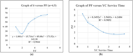 The CF values range from 0.5 to 1, where the lower and higher values correspond to heavy and zero congestion, respectively [34]. The average time spent by the trucks in each block during each TW during each simulation run is also collected and tabulated. The values are then normalized to obtain the updated CF, as mentioned. The updated factors are then fed back to the optimization model to yield new schedules and compute new TTTx values. The efficiency of the handling equipment in the CT yard is represented by the PF, and it assumes values of 1–6 moves per TW in each YB.