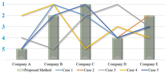 - MULTIMOORA approach:The traditional MULTIMOORA approach may result in unacceptable identical levels during pairwise comparison and circular reasoning methods, since it depends on human comparison for the ultimate ranking procedure. Brauers, W. et al. [] proposed dominance theory, which consolidated the cardinal value and ordinal value (i.e., the utility value and ranking, respectively) of each subordinate method of MULTIMOORA. Therefore, applying the enhanced Borda rule [] rather than the dominance theory has more benefits. Here, the presented the Borda rule to evaluate the rank coefficient in Equation (21) is as follows:where is the rank of the alternatives determined in previous steps and are the arbitrary constants. Finally, we rank the alternatives by MALTIMOORA methods by the rank coefficient values in decreasing order.