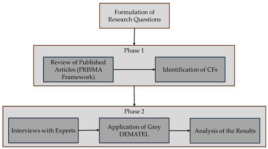 The research was conducted in two phases. In the first phase, a systematic literature review, using a network analysis to document publications on the original topic and identify the CFs for GPP, was carried out based on the PRISMA framework [,].