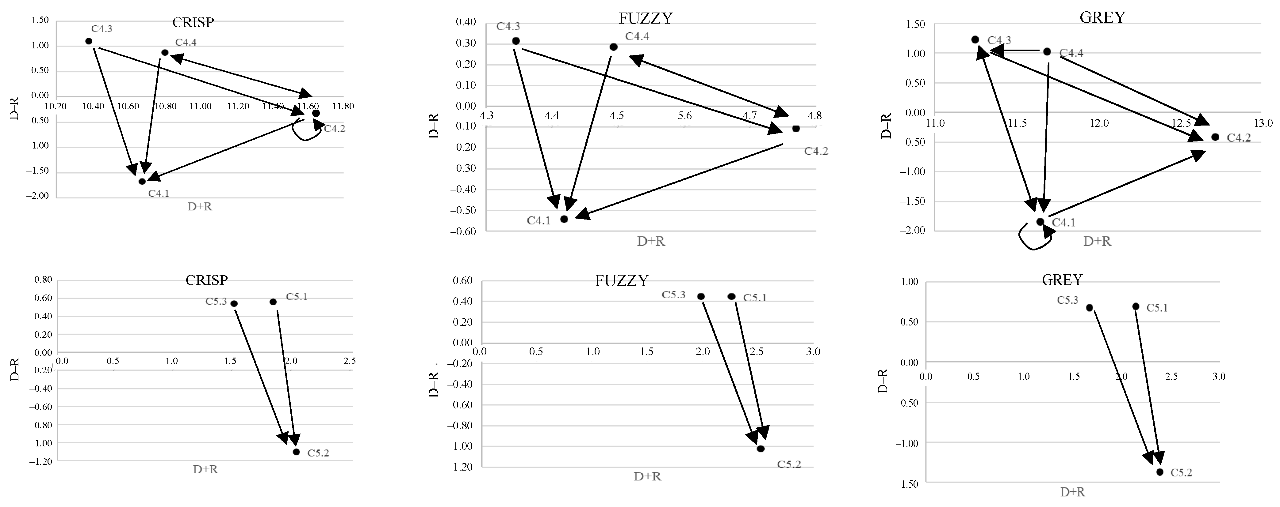 | C-DEMATEL-CRADIS | F-DEMATEL-CRADIS | G-DEMATEL-CRADIS | ||||||||||||||||
