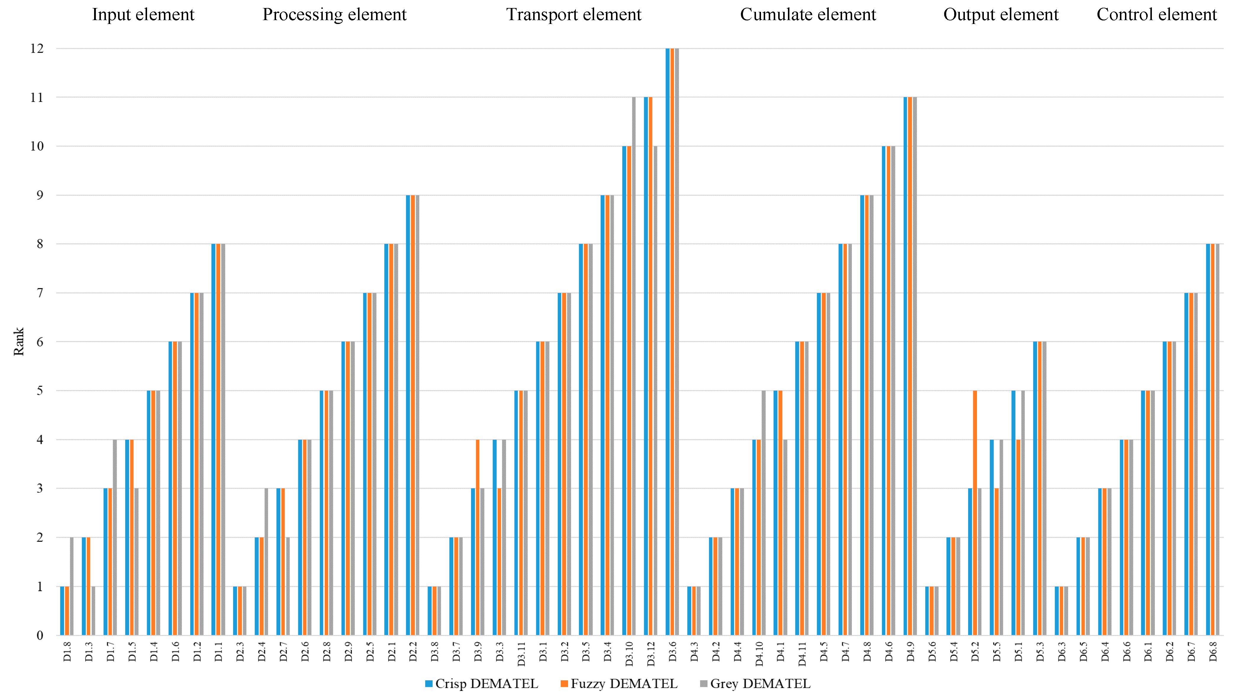 | 39 | Green Supply Chain | Output element * | 13 factors | DEMATEL | [44] |