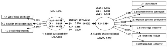 Various studies have highlighted the importance of social sustainability for resilience in supply chains in the pandemic context. For example, in Jordan, fair pay, work–life balance, occupational health and safety, and dialogue with workers’ representatives are essential to reduce operational risk in the garment sector [13]. Motivation, stress reduction, training, and workers’ compensation in the aerospace industry improve resilience in lean-manufacturing-based chains [6]. During the pandemic, fair wages, low layoffs, health and safety, and health training were key to maintaining resilience [4,23]. In India, healthcare and social distancing reduced risks in multi-sector chains during COVID-19 [24]. In Latin America, solidarity and commitment improved resilience in short food supply chains [25]. In the post-pandemic era, aspects such as social development, equality, social innovation, and employment growth are essential for supply chain adaptability [19,26,27]. In India’s manufacturing sector, logistics outsourcing must incorporate social sustainability criteria that ensure respect for breaks during the working day, weekly rest, and a safe working environment when selecting service providers, to overcome uncertainty and improve order fulfillment, responsiveness, sustainability, and competitiveness [16]. As can be seen, social sustainability is critical to supply chain resilience in various contexts and sectors.