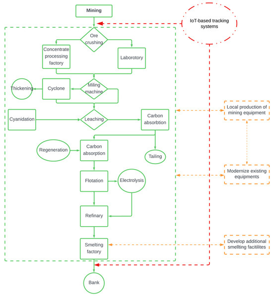 3]. Additionally, a lack of automation and outdated equipment decreases manufacturing efficiency, resulting in lower gold recovery rates and financial losses. These issues result in high operational costs, reductions in gold recovery, and lost economic value due to exporting unprocessed concentrates [