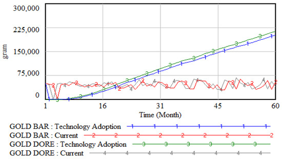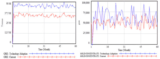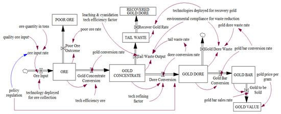 20]. In addition, the absence of localized smelting facilities and limited digital integration across the supply chain hinders the full realization of the benefits of smart mining. Global case studies on such approaches as autonomous haulage systems and digital twins demonstrate the potential for operational transformation when these technologies are deployed strategically. Integrating such tools could significantly improve gold recovery rates, reduce environmental risks, and align Kyrgyzstan’s mining sector with global sustainability standards. This study explores these prospects through a simulation model designed to evaluate the impact of technological adoption on mining efficiency and long-term sustainability outcomes.