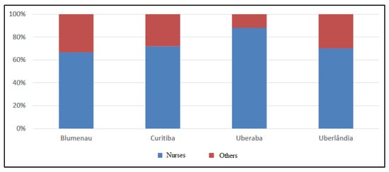 Comparison of the percentage of weekly workloads between nurses and other professionals in the Brazilian context.