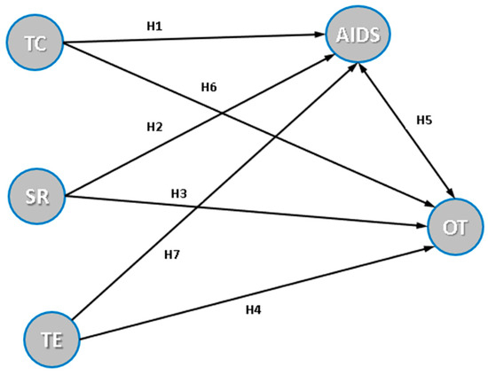 The recent literature highlights that technological maturity determines not only the openness to artificial intelligence but also the relevance of algorithmically generated decisions [4,26]. Thus, technology is not seen as an outcome but as a condition of possibility for intelligent decision support. In this context, organizations that invest in the modernization of technological infrastructure are in a favorable position to exploit the potential of AI in circular logistics processes. Based on these previous studies, the following hypothesis is proposed: