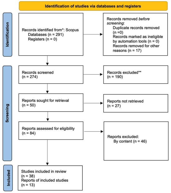 The method’s second stage, study selection, consisted of six steps, as illustrated in Figure 1. The objective at this stage was to develop a data extraction sheet capturing key information from each article. The initial search yielded 291 articles. We excluded specific types of publications (such as editorials, reviews, and documents not in English), leaving 274 documents.