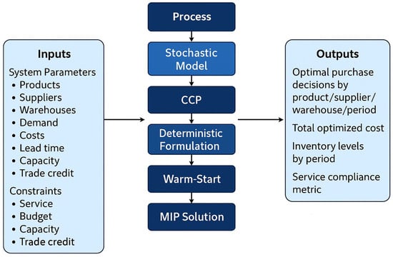 Figure 1 presents a schematic representation of the proposed inventory model, summarizing the main inputs, optimization steps, and expected outputs. This flowchart facilitates understanding of the model’s structure and its solution procedure.