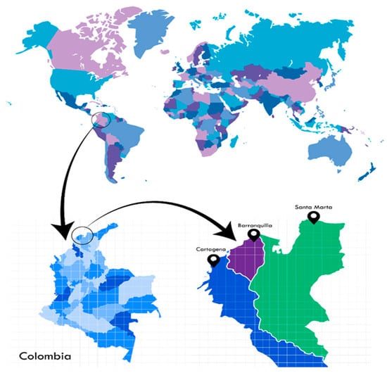 Santa Marta has been chosen as the focus of this study due to its interesting logistical characteristics (which can be largely exploited) compared to Barranquilla and Cartagena, since these ports are part of the most important port sector in Colombia within a 200 km radius. Its proximity to the Panama Canal and key trade routes to the Caribbean, the eastern United States, and Europe further enhances its strategic value. Additionally, the ease of the road and rail transportation of export cargo from these three Caribbean ports presents a significant advantage over the Pacific port of Buenaventura. Likewise, the Chocó port has been removed from this study, given its characteristics and particularities that have nothing to do with the Caribbean.