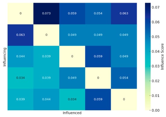 To identify significant influences, a significance threshold was calculated with a value of . All values in the total influence matrix that are greater than or equal to this threshold have been highlighted to indicate relationships of high systemic relevance.