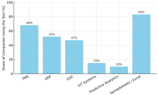 The survey results reveal a relatively high level of adoption of basic logistics systems among the enterprises surveyed, but limited deployment of advanced digital solutions. Transport Management Systems (TMS) were the most widely used, with 68% of enterprises reporting implementation. Enterprise Resource Planning (ERP) systems followed at 52%, while Electronic Document Circulation (EDC) platforms were used by 47% of respondents.