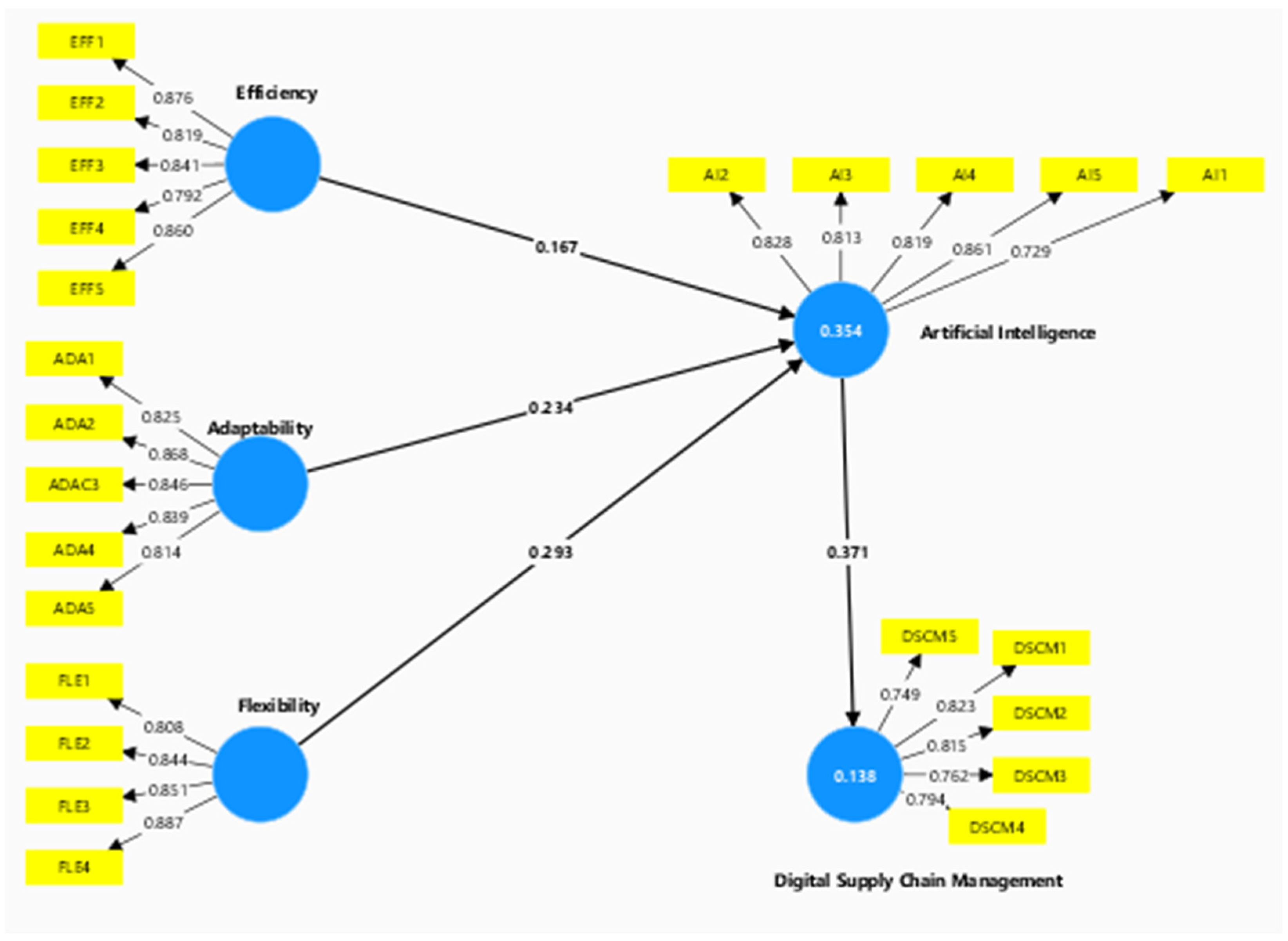 H3 | Artificial Intelligence -> Digital Supply Chain Management | 0.371 | 0.086 | 4.291 | 0 | Supported |