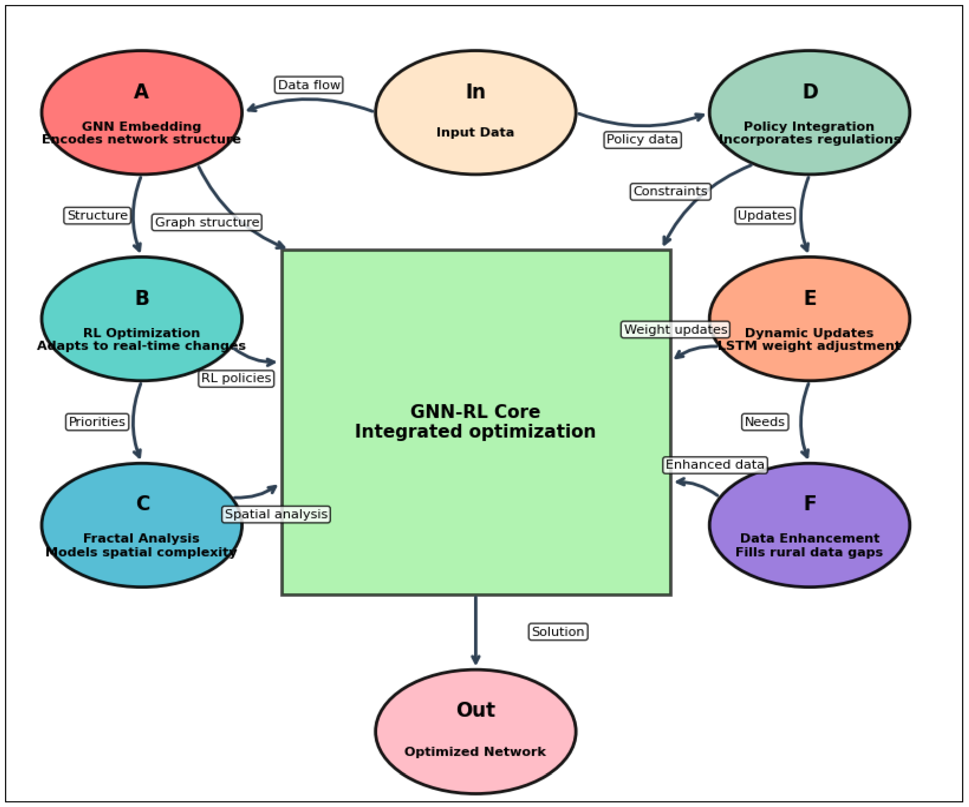 - GNN optimization, contrasting traditional operations research with emergent reinforcement learning techniques for dynamic, large-scale network design suited to the corridor’s 412-node complexity.