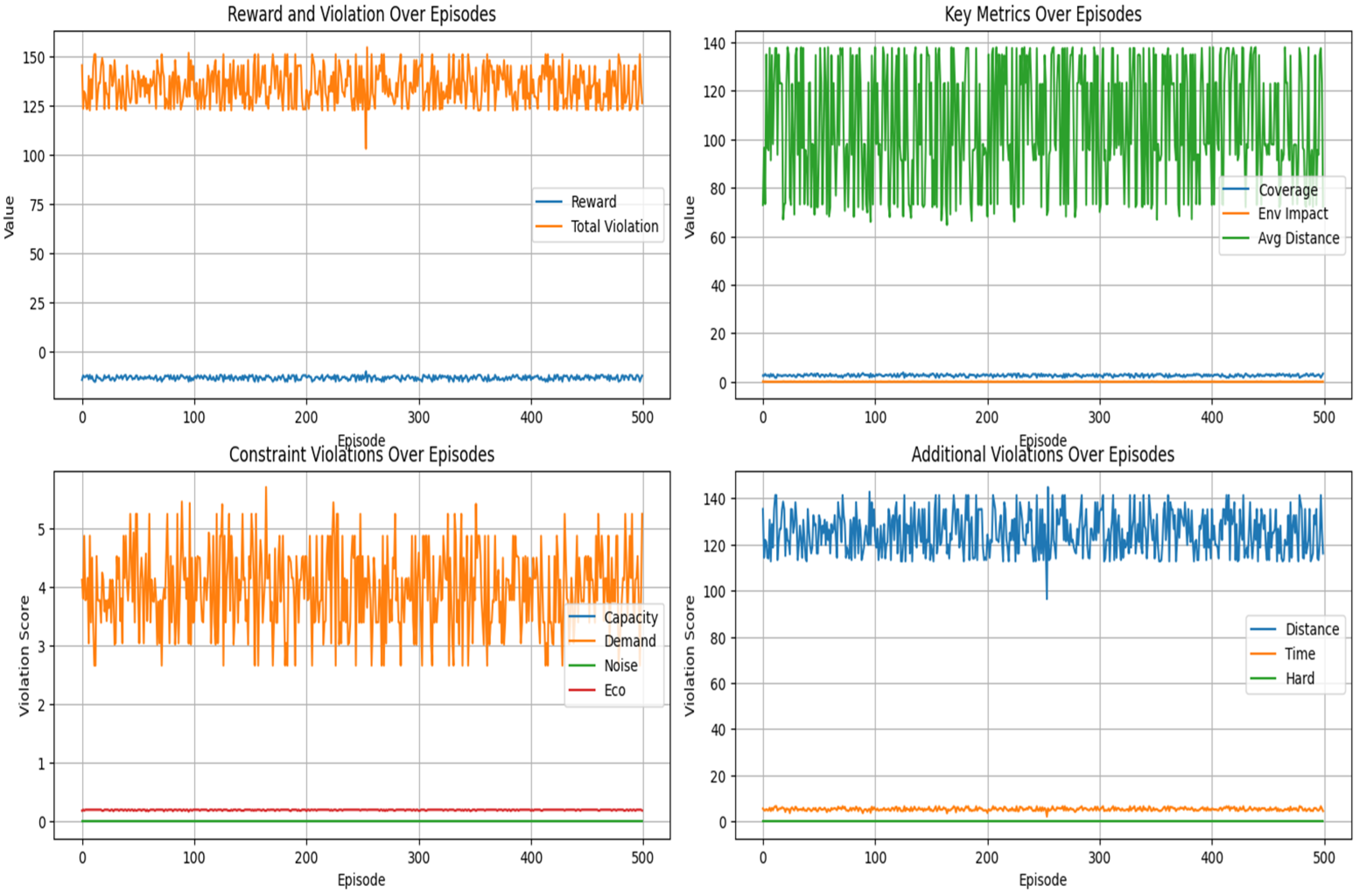 - Train Reinforcement Learning (RL) agents to dynamically reconfigure hub activation and routing in response to disruptions (e.g., demand spikes) while optimizing cost, emissions, and service reliability.