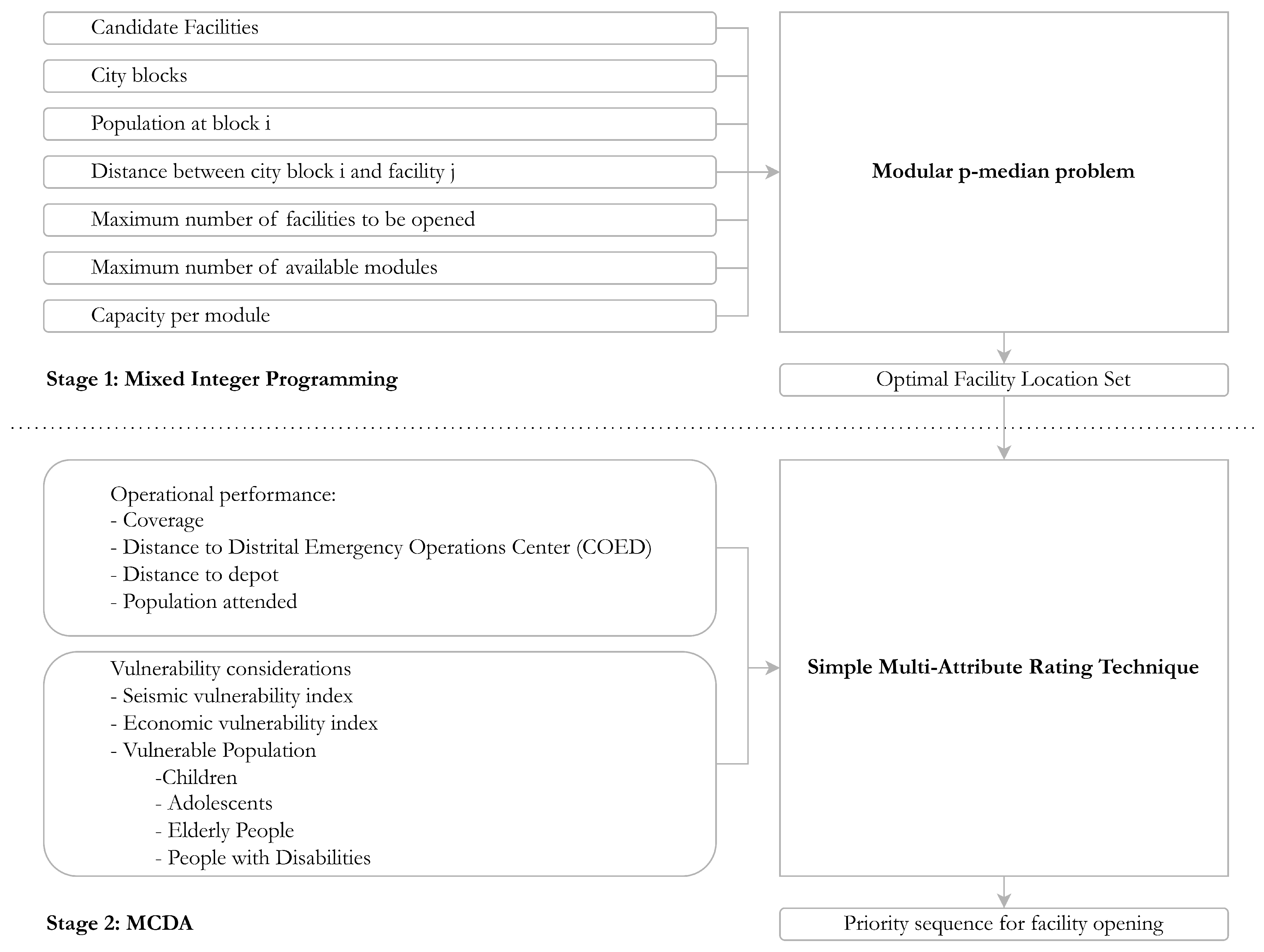 - Cavdur, F.; Kose-Kucuk, M.; Sebatli, A. Allocation of temporary disaster response facilities under demand uncertainty: An earthquake case study. Int. J. Disaster Risk Reduct. 2016, 19, 159–166. [Google Scholar] [CrossRef]