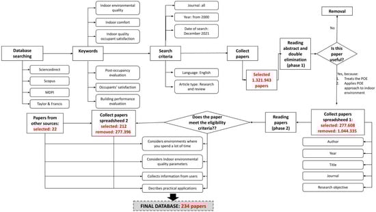 To make the literature review more effective, an appropriate approach to the collection and analysis of scientific documents was necessary. All the papers that analyze the concept of indoor environmental quality in the context of the use of the POE approach were considered.