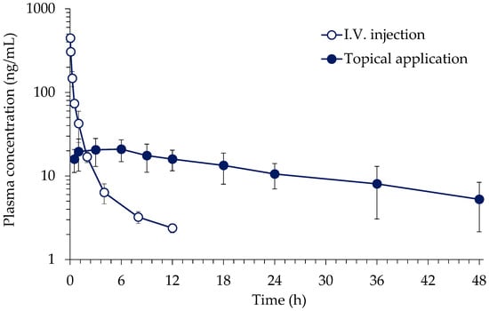 3.2. In Vivo Percutaneous Absorption