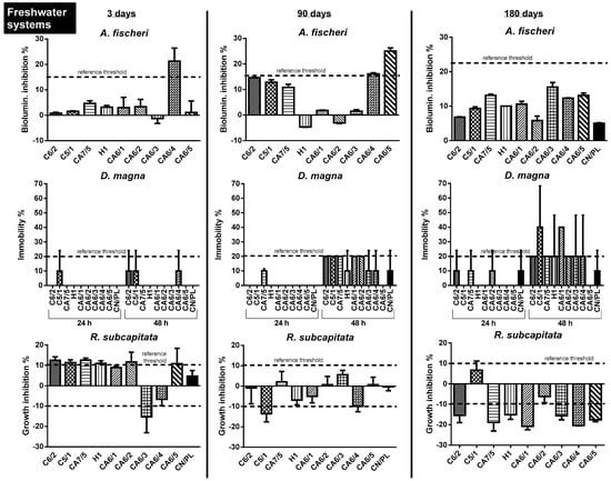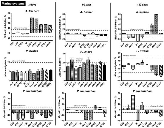 | A. fischeri | R. subcapitata | D. magna | A. fischeri | P. tricornutum | P. lividus | |