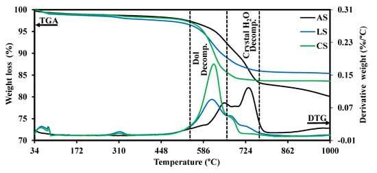 - Olszak-Humienik, M.; Jablonski, M. Thermal behavior of natural dolomite. J. Therm. Anal. Calorim. 2015, 119, 2239–2248. [Google Scholar] [CrossRef]