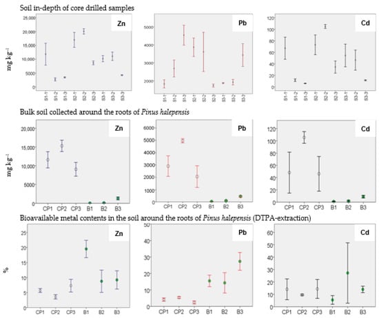 3.4. Bioavailable Content of Zn, Pb and Cd (DTPA)