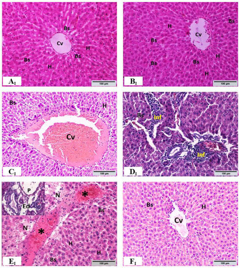 The liver is the primary target organ exposed to many foreign substances before dilution in the systemic circulation because it is an entry portal to the circulatory system and the other tissues of the body. It plays a critical role in determining the toxicity of various harmful agents due to its major role in the metabolism, transmission, and elimination of toxic substances. Therefore, it is likely to be affected by various toxic agents known to cause damage to liver tissues []. For this reason, hepatocyte functions are usually evaluated to examine toxicities [].