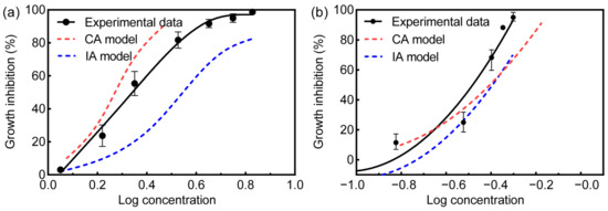 CA and IA models are the two most commonly used models when predicting the toxicity of binary mixtures. Among them, the CA model is based on the same mechanism or mode of action between the two compounds, and the equation is shown below [21,26]: