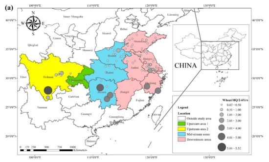 (a) HQ/2–6 yrs., (b) HQ/7–17 yrs., and (c) HQ/ ≥ 18 yrs. of Cd in wheat based on data collected from previous studies.