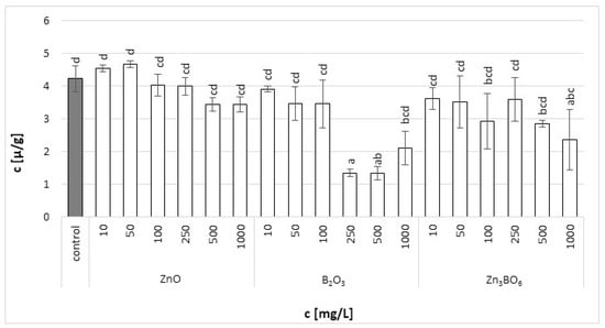 Petrová, Š.; Soudek, P. Ecotoxicity Study of Additives Composed of Zinc and Boron. Toxics 2022, 10, 795. https://doi.org/10.3390/toxics10120795