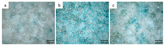 Representative microscopic images of Caco-2 cells (a), HT29-MTX cells (b) and Caco-2/HT29-MTX coculture cells (c) stained with alcian blue.