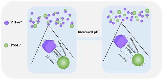 The schematic of the adsorption of PSMPs by ZIF-67 with the influence of increasing pH.
