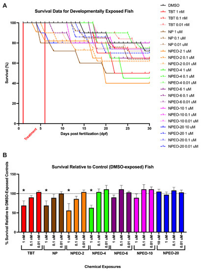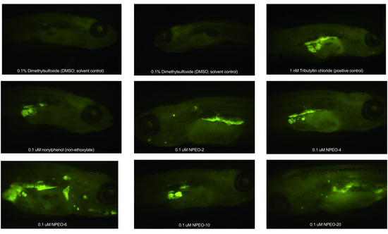 - Balch, G.; Metcalfe, C. Developmental effects in Japanese medaka (Oryzias latipes) exposed to nonylphenol ethoxylates and their degradation products. Chemosphere 2006, 62, 1214–1223. [Google Scholar] [CrossRef]