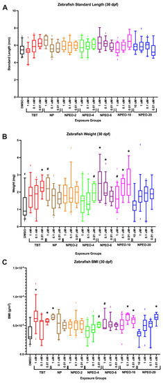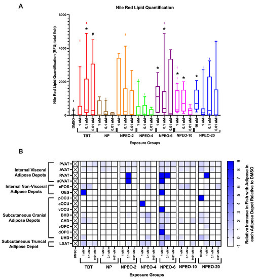 Kassotis, C.D.; LeFauve, M.K.; Chiang, Y.-T.T.; Knuth, M.M.; Schkoda, S.; Kullman, S.W. Nonylphenol Polyethoxylates Enhance Adipose Deposition in Developmentally Exposed Zebrafish. Toxics 2022, 10, 99. https://doi.org/10.3390/toxics10020099