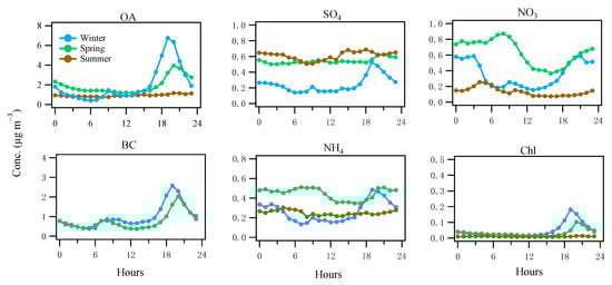 3.2. Diurnal Patterns of the Major Components of NR-PM1
