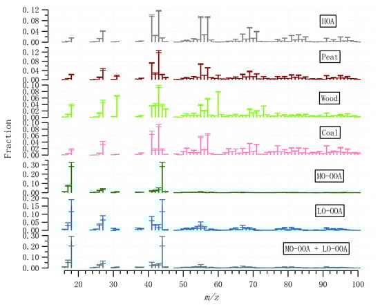 - Alfarra, M.R.; Prevot, A.S.H.; Szidat, S.; Sandradewi, J.; Weimer, S.; Lanz, V.A.; Schreiber, D.; Mohr, M.; Baltensperger, U. Identification of the mass spectral signature of organic aerosols from wood burning emissions. Environ. Sci. Technol. 2007, 41, 5770–5777. [Google Scholar] [CrossRef]