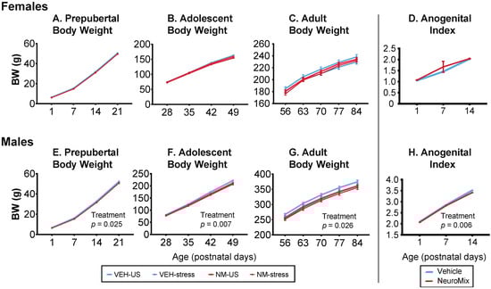 - Manzano Nieves, G.; Schilit Nitenson, A.; Lee, H.I.; Gallo, M.; Aguilar, Z.; Johnsen, A.; Bravo, M.; Bath, K.G. Early Life Stress Delays Sexual Maturation in Female Mice. Front. Mol. Neurosci. 2019, 12, 27. [Google Scholar] [CrossRef] [Green Version]