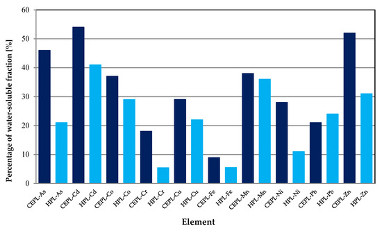 Mean proportion of water-soluble fractions of PTEs in the urban air classified as follows: CEPL—commonly encountered pollution level; HPL—high pollution level.