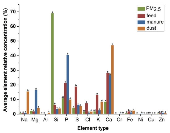- The manure in the pig house can produce elliptical-deposited particles that are common in PM2.5 of pig houses and that easily adhere to other components. In addition, manure has an impact on PM2.5 concentrations and microbial components. Therefore, the relationship between manure management in pig houses and PM2.5 is worth further study in the future.