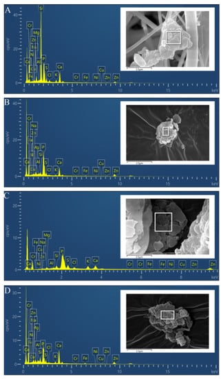 - Satsangi, P.G.; Yadav, S. Characterization of PM2.5 by X-ray diffraction and scanning electron microscopy–energy dispersive spectrometer: Its relation with different pollution sources. Int. J. Environ. Sci. Technol. 2014, 11, 217–232. [Google Scholar] [CrossRef] [Green Version]