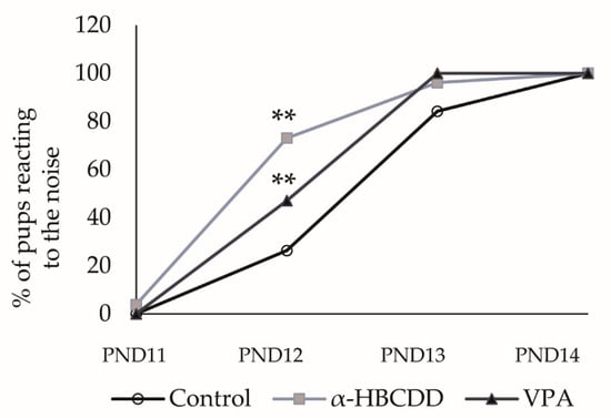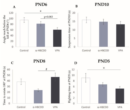 Morel, C.; Christophe, A.; Maguin-Gaté, K.; Paoli, J.; Turner, J.D.; Schroeder, H.; Grova, N. Head-to-Head Study of Developmental Neurotoxicity and Resultant Phenotype in Rats: α-Hexabromocyclododecane versus Valproic Acid, a Recognized Model of Reference for Autism Spectrum Disorders. Toxics 2022, 10, 180. https://doi.org/10.3390/toxics10040180